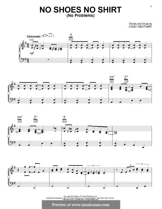 No Shoes No Shirt (No Problems) by C. Beathard - sheet music on MusicaNeo